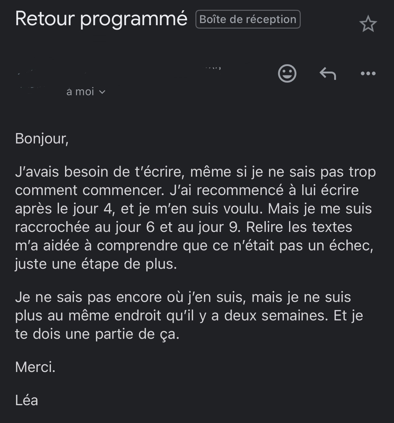 « Chaque jour, j’avais l’impression qu’on mettait les bons mots sur ce que je ressentais. Ça m’a aidée à sortir de la confusion et à faire la paix avec moi-même. »